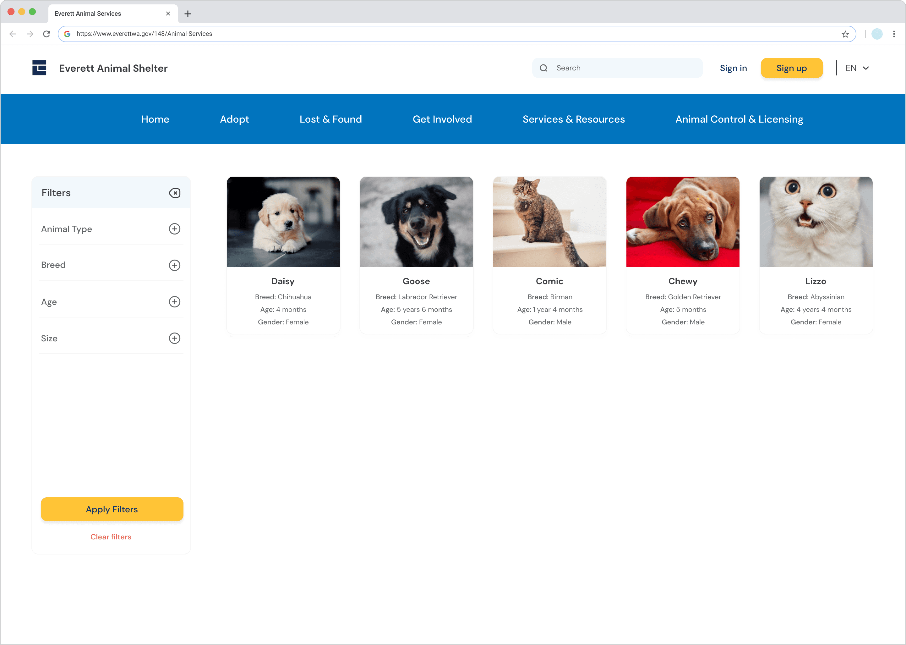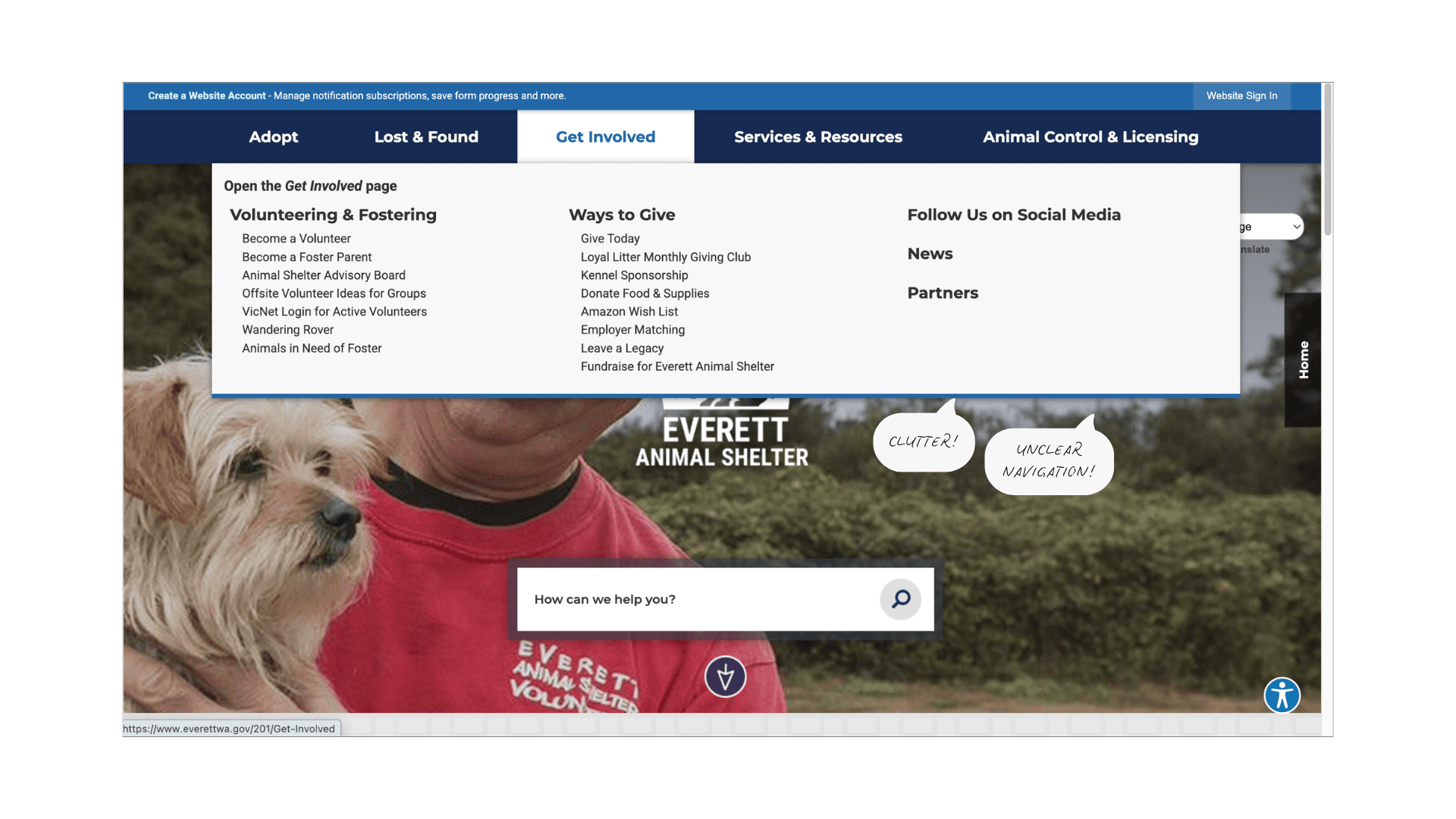 The Everett Animal Shelter website plays a critical role in connecting animals with adopters, volunteers, and foster caregivers in the community. But despite its meaningful mission, the experience often made simple tasks feel difficult.